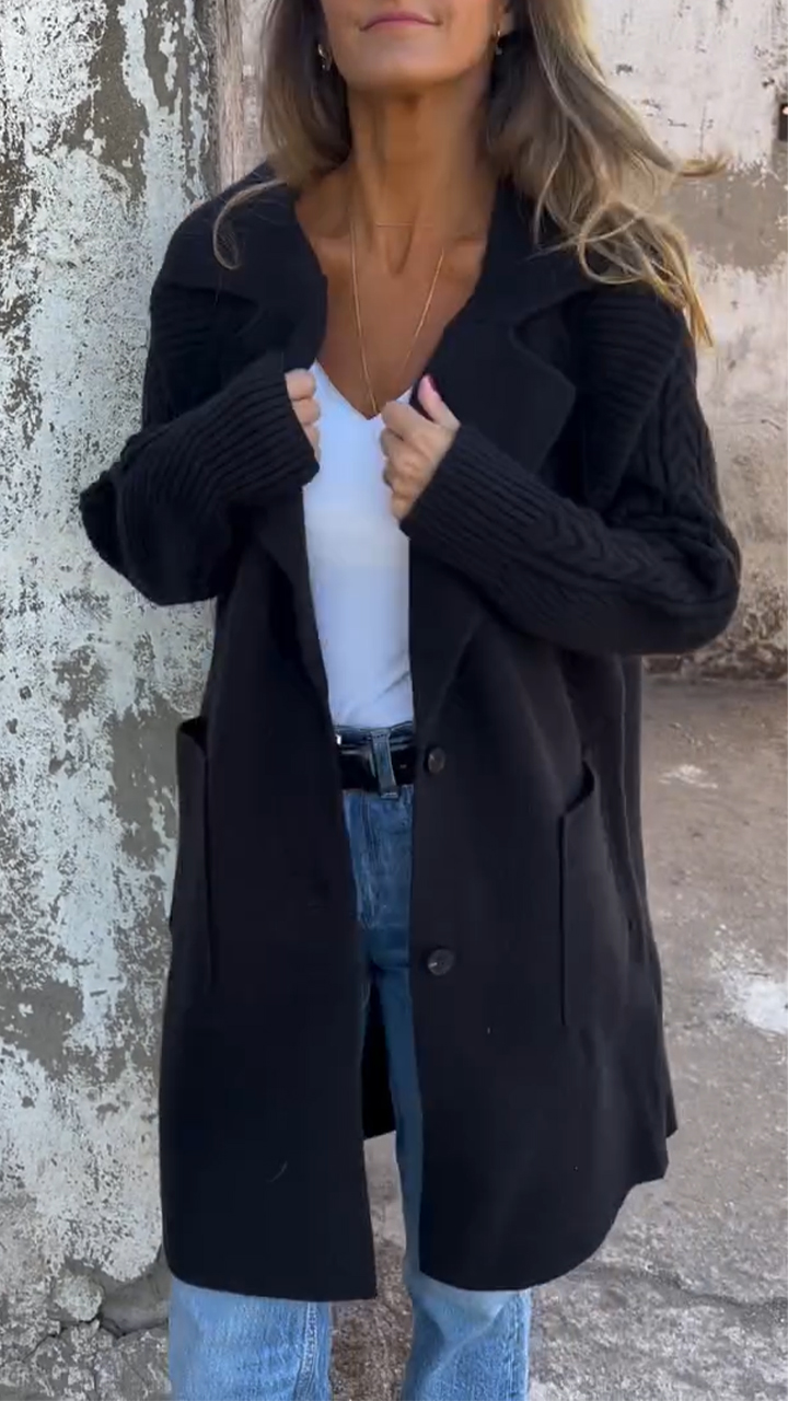 Women's Lapel Button Knitted Patchwork Sleeve Casual Coat