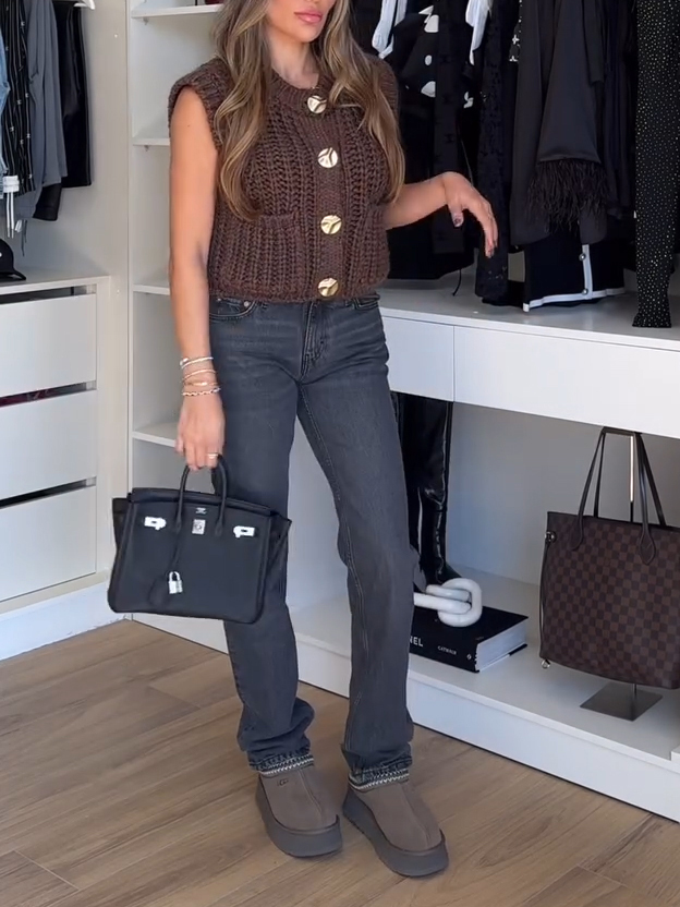 Casual Metal Button Chunky Knit Vest